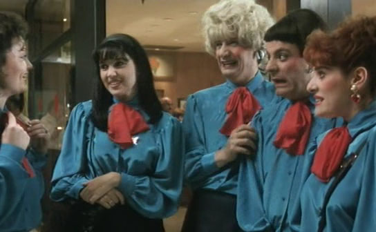 Con la juerga que ello desencadena, Senén y Martín se infiltrarán en los grandes almacenes como empleados, adoptando para ello los nombres de Pedro Palanca y José Luis Ripolles, y pululando por varios trabajos denigrantes, que van desde hacer de maniquíes en la sección de deportes hasta atender a los mendigos en la Planta Alcantarilla, pasando por el peor de todos: participar en una escena larguísima y estúpida (más que el resto de la peli) con Emilio Aragón, que no viene a cuento. Emilio Aragón es que entre esto, Javier ya no vive solo y lo del Circo Estable de Madrid, parece que se quiere hundir a sí mismo (en el caso del circo, unas cuantas casas también, ya que está).